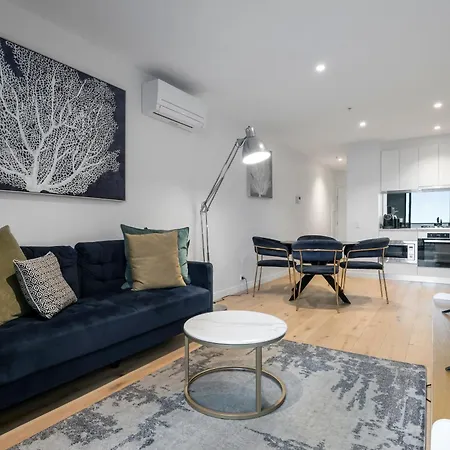 Lux Hamptons Glamour Near Crown w FREE Parkingアパ-トは,The Clarendon Centreの隣のメルボルンの住宅街にあります. 電子レンジ と冷蔵庫を備えた器具でいっぱいの台所も提供しています.